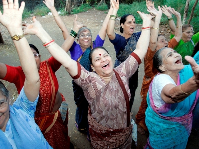 Rumor has it that the world-renowned director Mira Nair (MONSOON WEDDING, VANITY FAIR, THE NAMESAKE), was in Bombay, stuck in traffic on Marine Drive and in the midst of a movie-maker’s equivalent of writer’s block when she discovered the source of traffic was hundreds of women dressed in all white crossing the street. She was so intrigued, that she ditched her cab and followed these women with her DV camera — some time later, the LAUGHING CLUB OF INDIA was born.